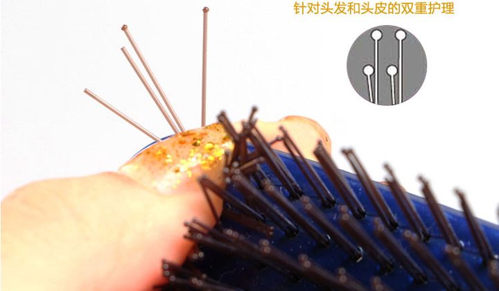 3、特制尼龍梳齒,梳針部分添加尼龍成分柔軟有彈性,可輕松打開頭發(fā)打結(jié)部分。